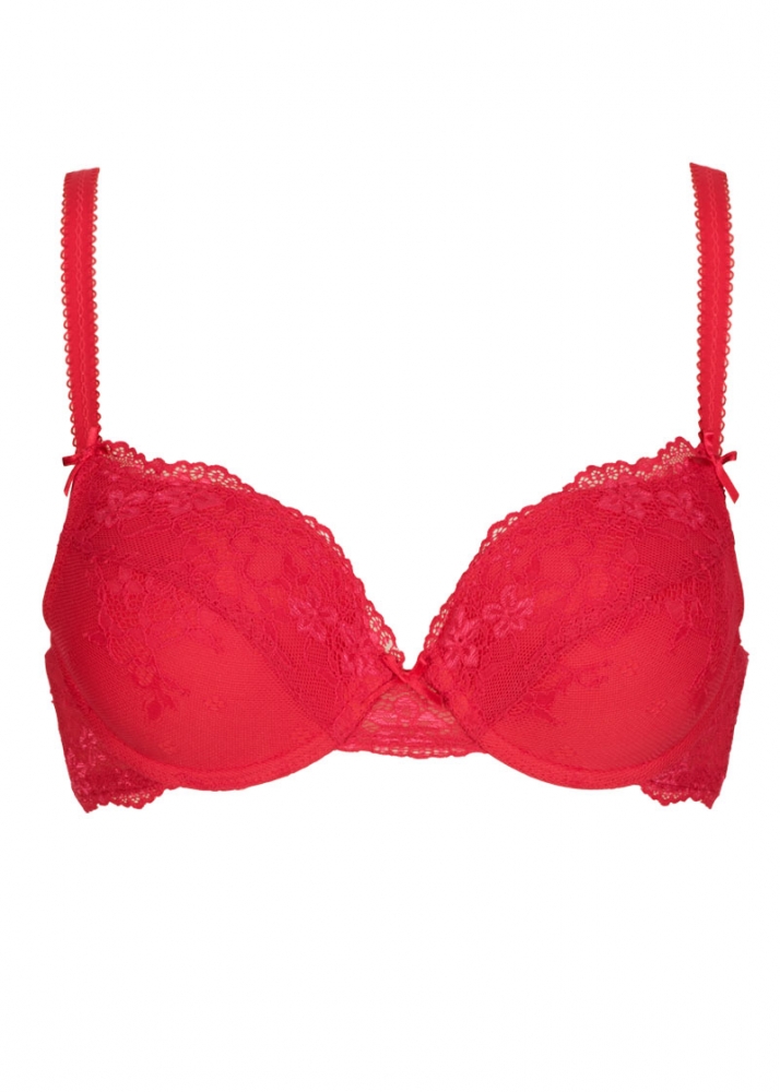 Daily Lace, push-up bh i rött med en elegant och sofistikerad spets är en färgstark och glädjefull serie underkläder. Kuporna har en gelé fyllning som ger extra push-up effekt.